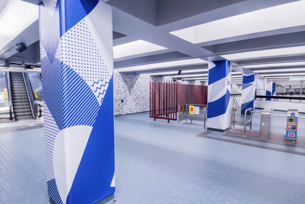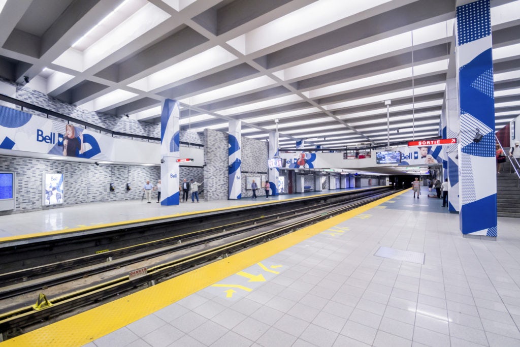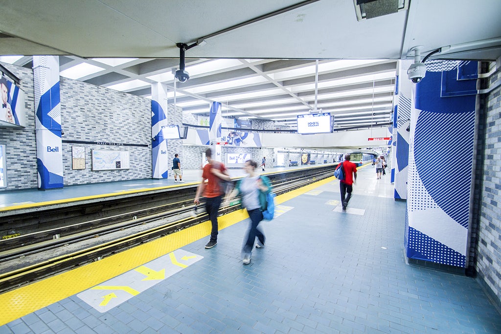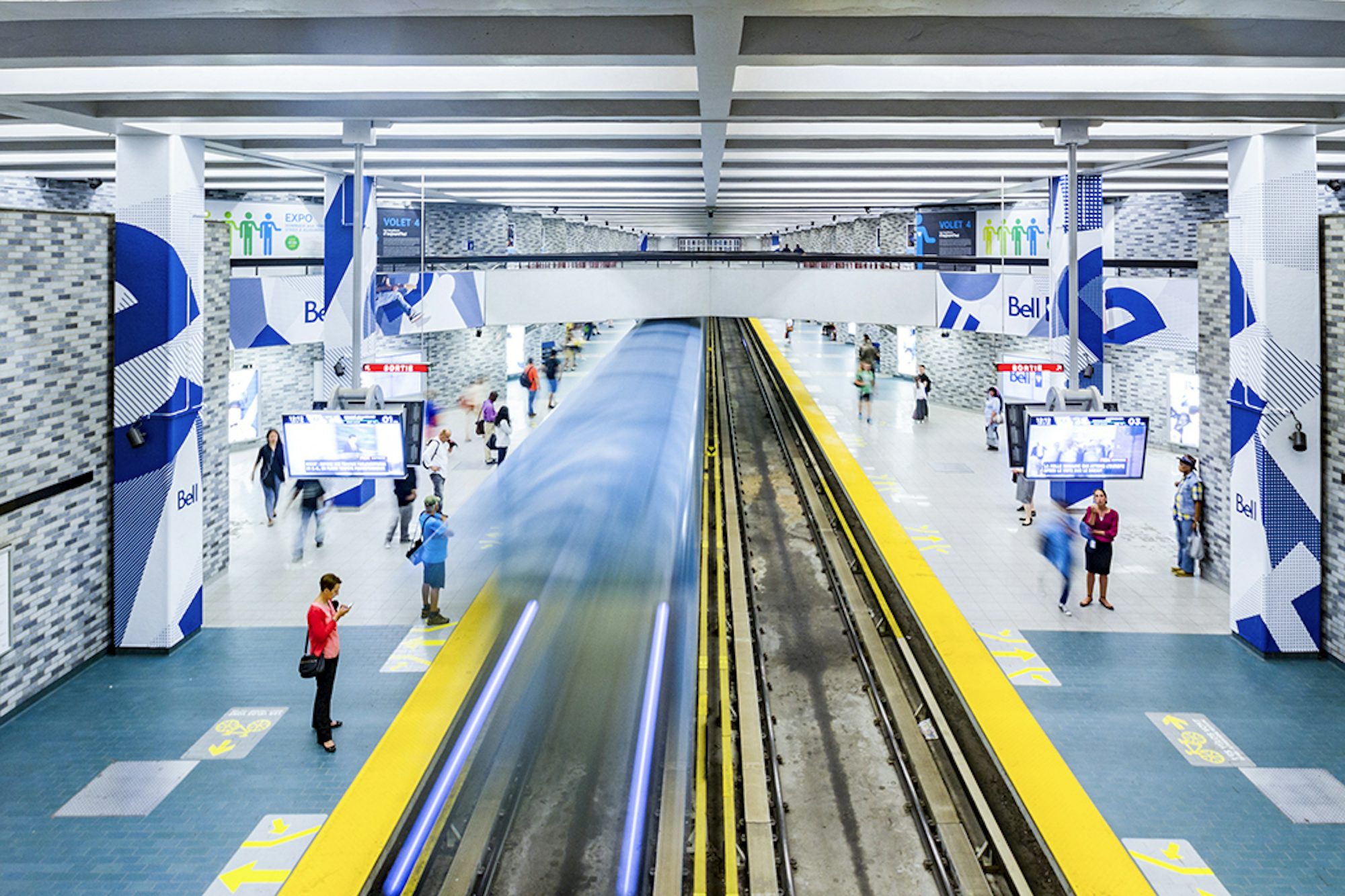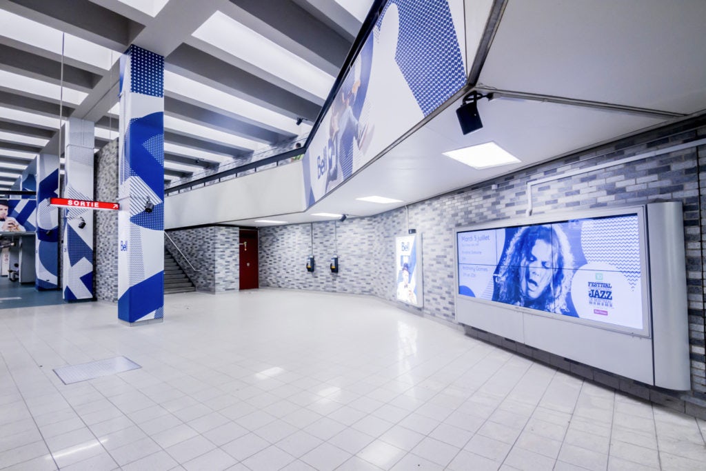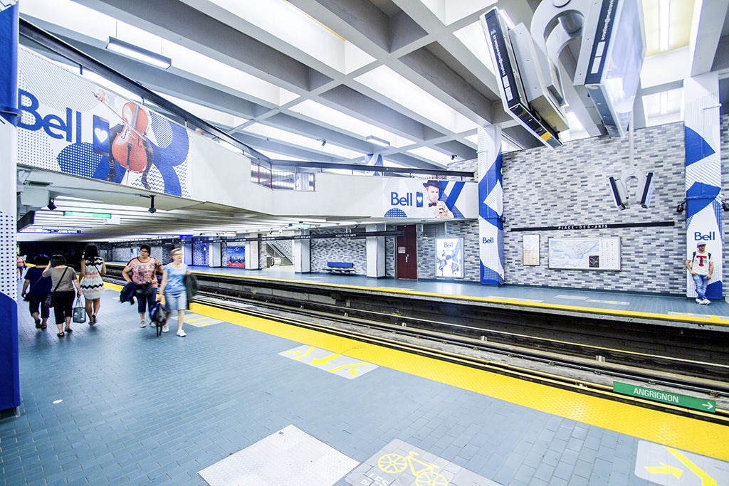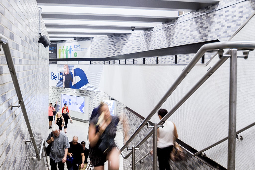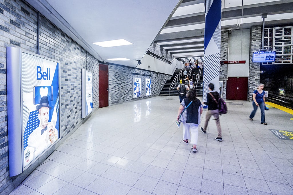 Bell dominated the Place-des-Arts subway station in their signature blue and white colours during the Montreal Jazz Festival. Perfectly situated in the heart of the “Quartier des Spectacles”, this was the station most used by festival goers.