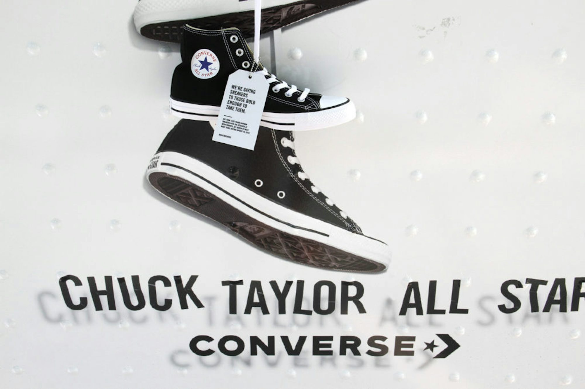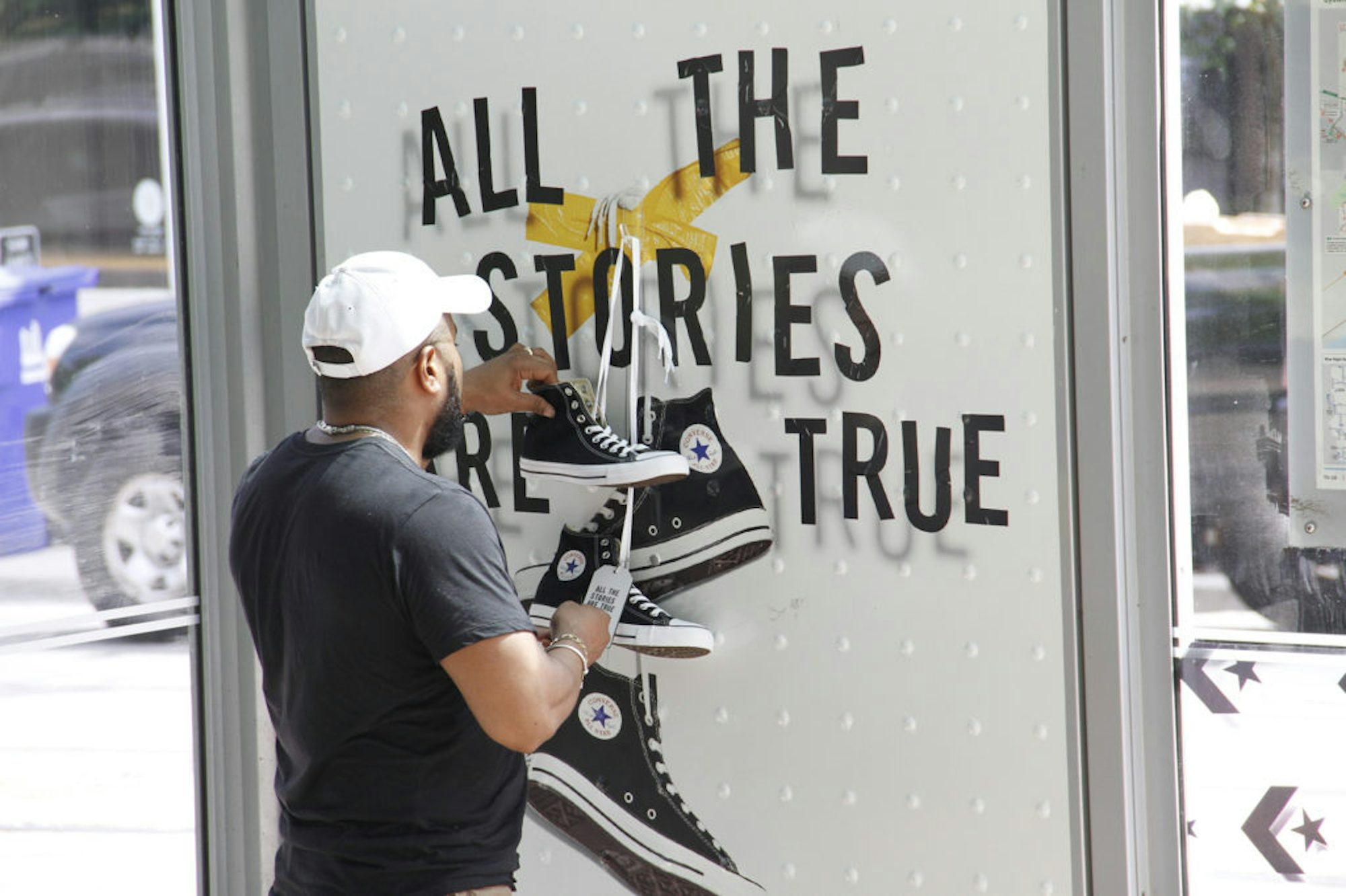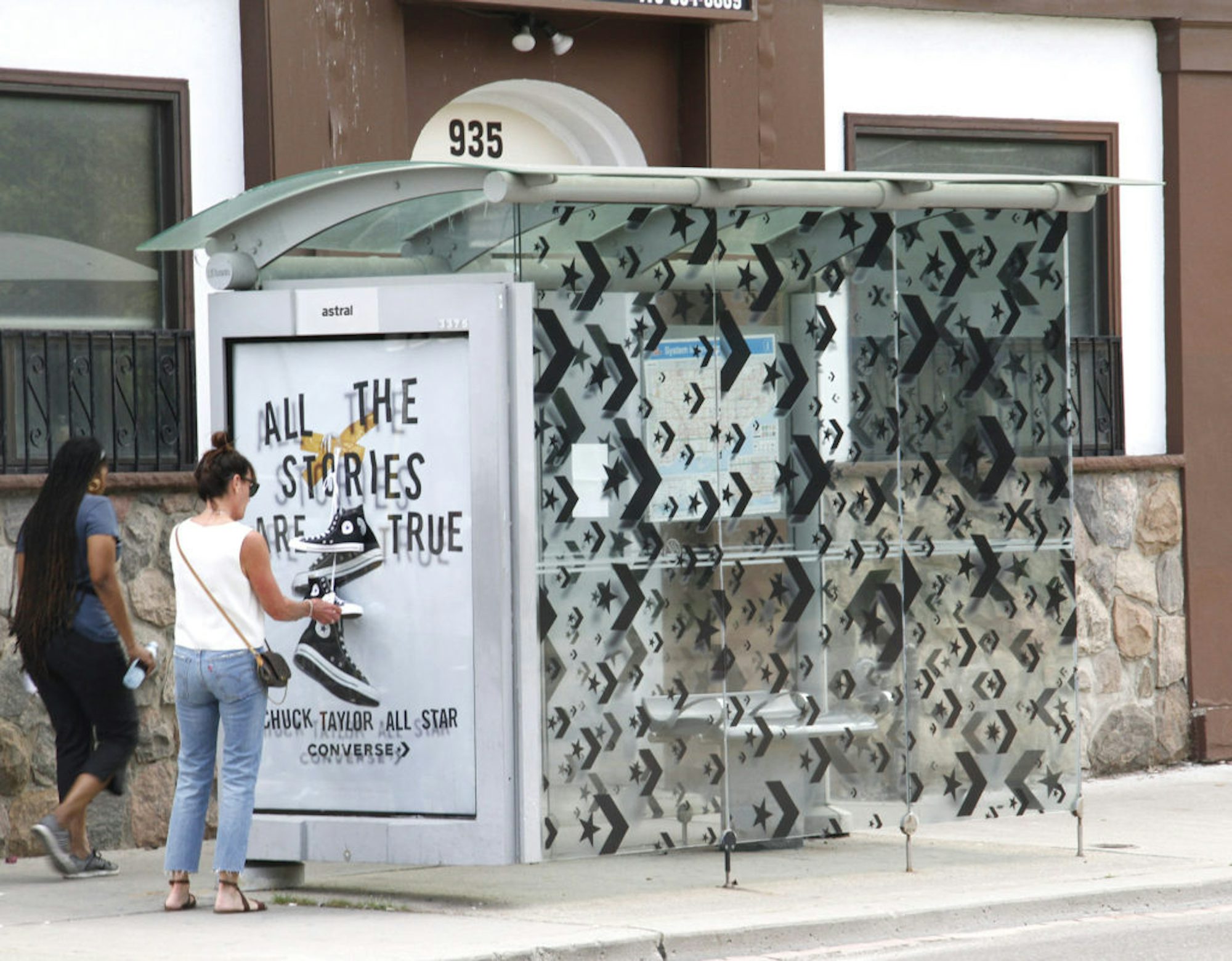 To promote their Chuck Taylor’s brand, Converse gave away free pairs of shoes using Astral Transit Shelters in strategic places in downtown Toronto. The shoes were hung upon a specially wrapped transit shelter face. A tag on the shoes indicated to the lucky person where they could exchange them for a different size if needed. In total, a 100 pair of shoes were given away over a 15 day period at 3 different locations in Toronto.