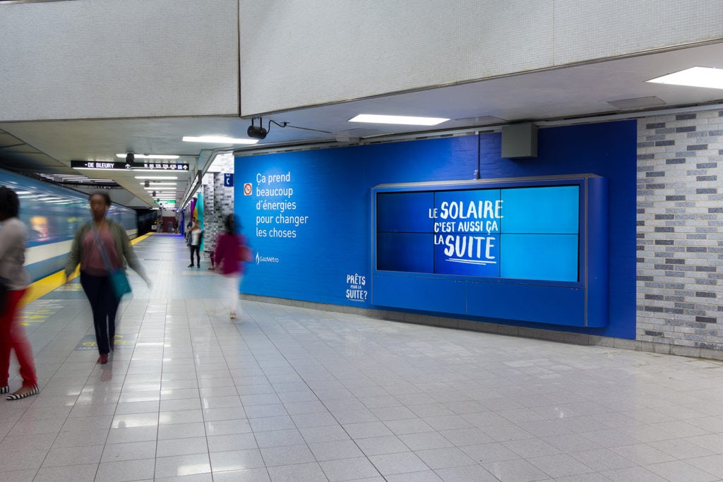 To put forward the ecological use of renewable energy and natural gas, Gas Métro decided to work with the Astral Out of Home Transit products to create an impact to possible customers. A total of 6 digitals murals were wrapped in the Montreal subway, the 1000 de la Gauchetière and the Central Station. In addition, a nifty vinyl wrap around a dual platform poster at the Berri subway station transforms efficiently both posters to a trailer truck.