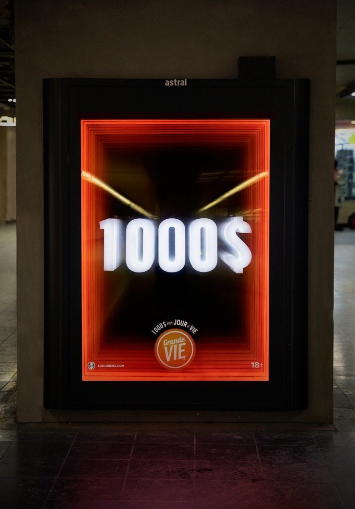 With a single advertising face in the Montreal subway, Loto-Québec managed to have public transit users dream a little. For its “Grande Vie” lottery ticket – which gives winners $ 1,000 every day for life – the Astral Special Projects team and the creative agency Sid Lee developed an infinity mirror. This optical illusion allowed transit users to reflect on the infinite possibilities a “Grande Vie” winner will face with its prize or even allows us to visualize what a daily prize of $ 1,000 could feel like.