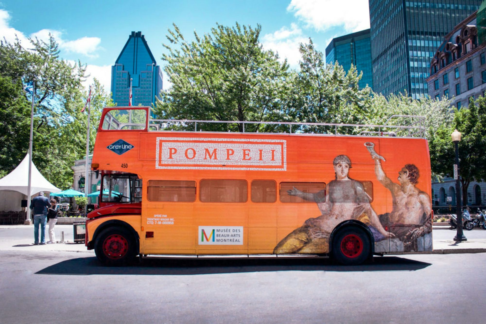 The Montreal Museum of Fine Arts used the large scale Double Decker wrap to draw attention to the Pompeii exhibition running until September 2016.