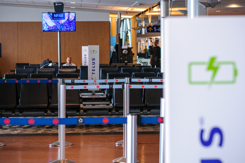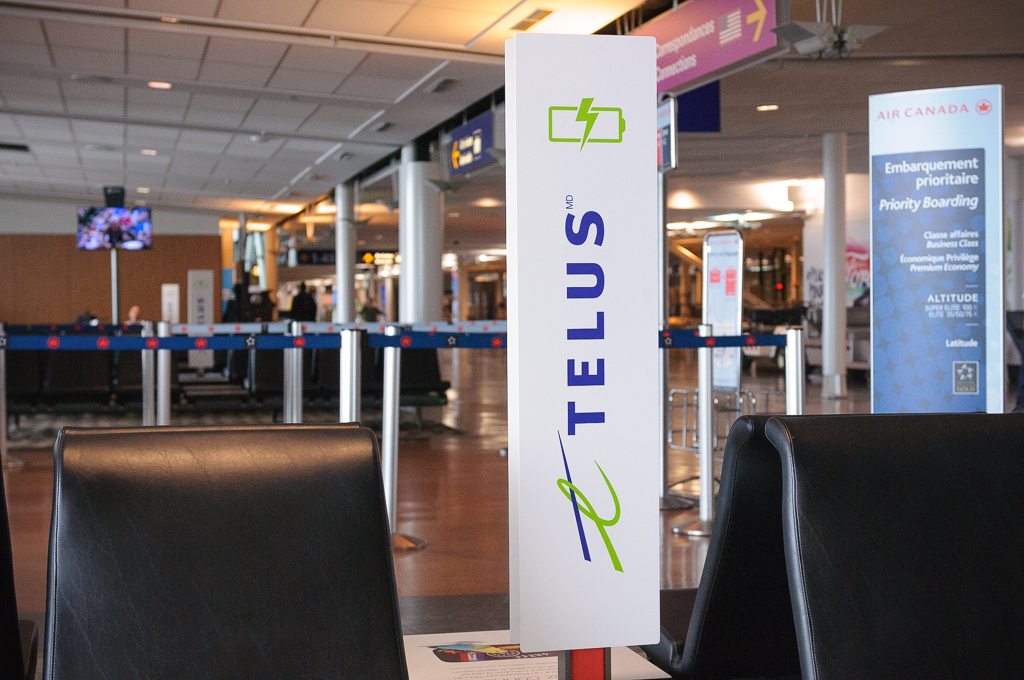 All 118 charging stations were wrapped to promote Telus’s roaming plan offers. Each jetty had its own visual creating an impressive impact in the different hold rooms reaching travellers during their dwell time at the airport.