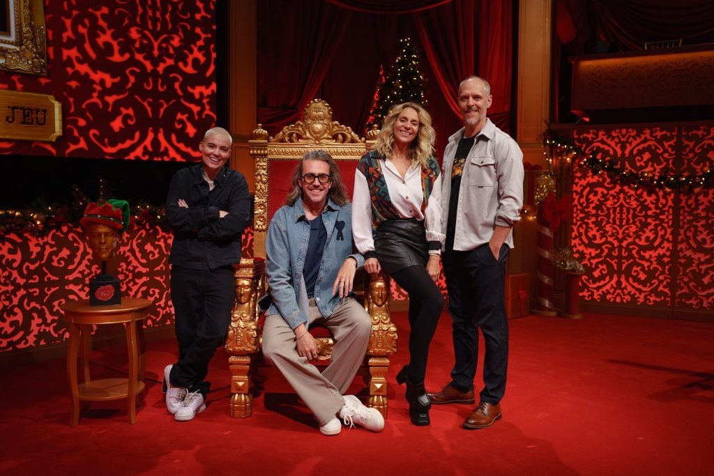 Les quatre artistes invités se soumettent à des défis thématiques et comiques, comme performer un cantique de Noël imaginé de leur cru, mettre tous les cadeaux sous le sapin et, finalement, découvrir qui se cache derrière le père Noël mystère invité en studio.