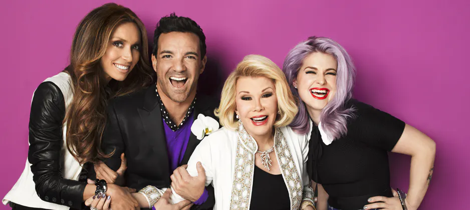 Faites voir vos Louboutins! Avec sa notoriété et son sans-gène habituel, la Joan Rivers commente la mode et la culture pop dans Fashion Police sur E!. Joan est accompagnée d’un panel de célèbres fashionistas, dont la starlette Kelly Osbourne, la vedette de E! et de Style Network Giuliana Rancic et du styliste de célébrités George Kotsiopoulos.
