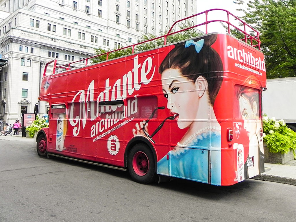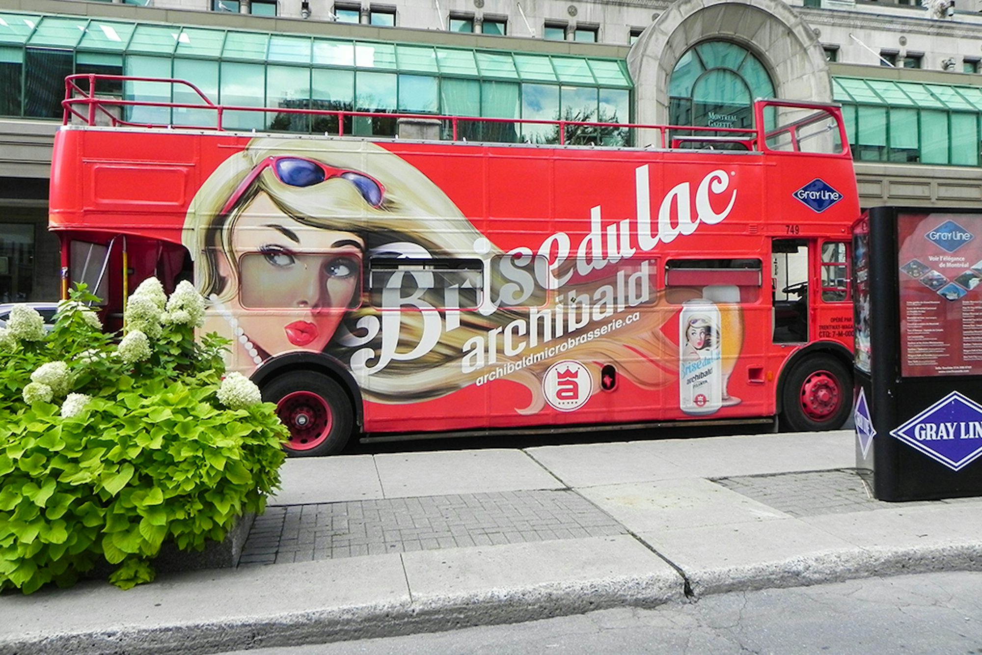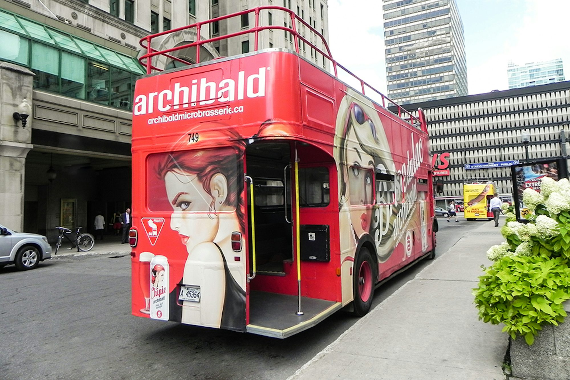 La microbrasserie Archibald a affiché trois de ses marques de bières sur l’autobus à deux étages de Gray Line, qui parcourt les rues de Montréal en été.