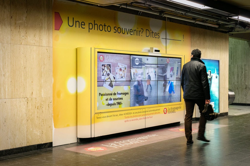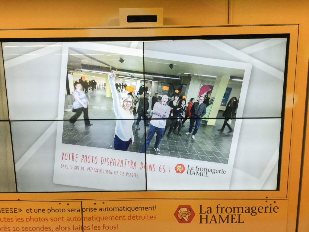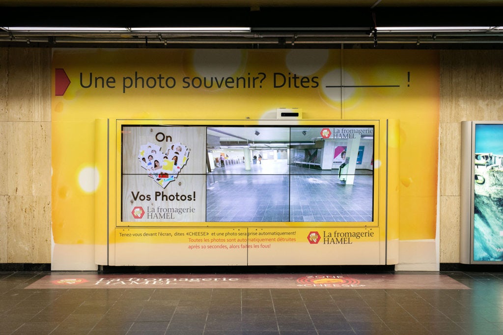 La Fromagerie Hamel a maquillé la murale numérique au niveau mezzanine de la station de métro McGill, en y intégrant une caméra afin de pouvoir photographier des passants. Ces photos étaient affichées à côté d’un message publicitaire pour seulement 10 secondes, question de respecter l’intimité des participants.