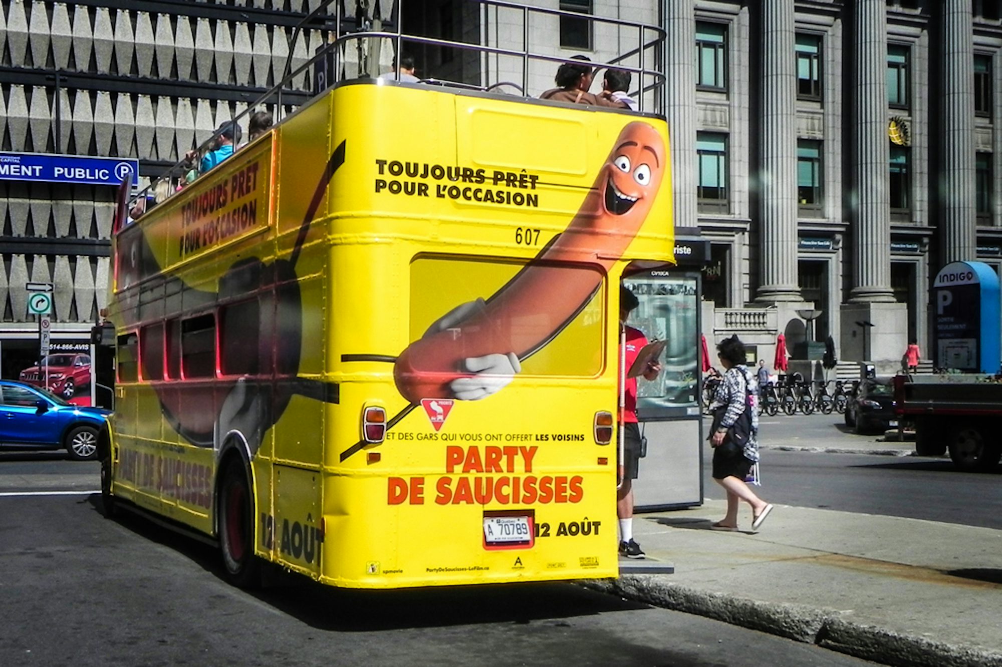 Sony Pictures a choisi de maquiller un autobus à deux étages pour promouvoir la sortie du film « Party de saucisses ». Grâce à ses couleurs vives, l’exécution créative était idéale pour attirer l’attention des passants.