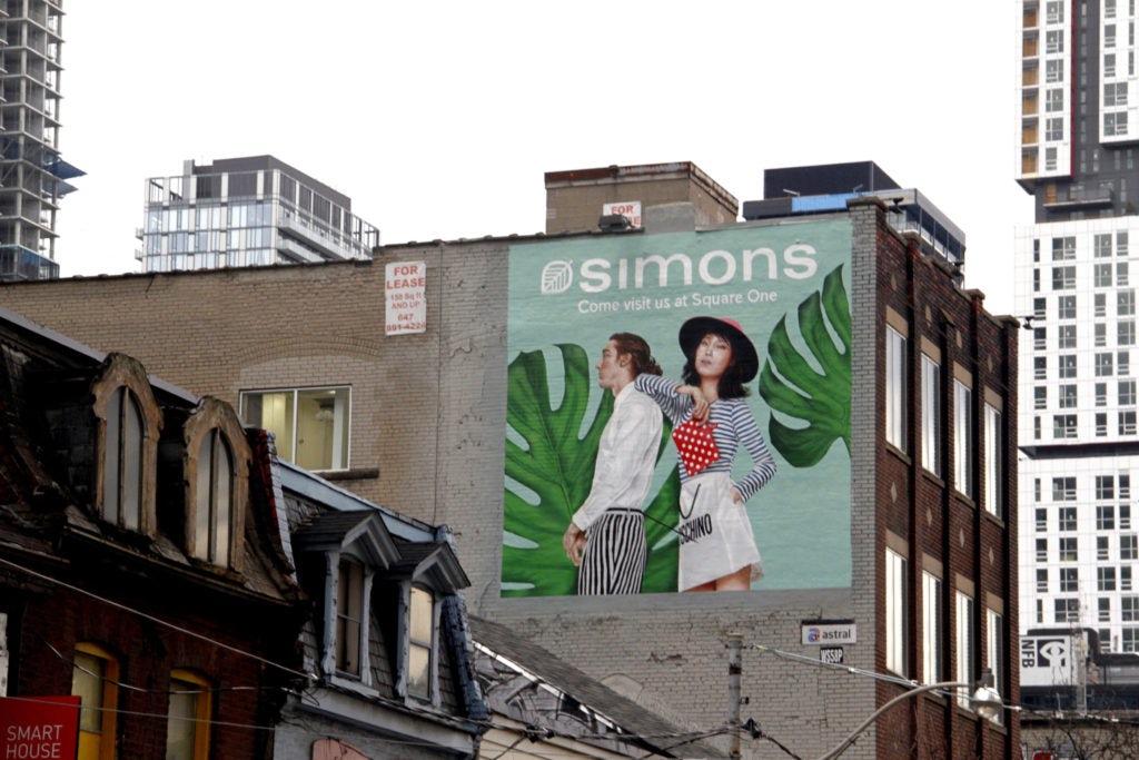 Six exécutions ont été affichées sur des abribus et peinte à la main sur une murale de 20 x 20 pi afin de mettre en valeur des couturiers de renommée mondiale et huit marques maisons, dans le cadre de l’ouverture d’un nouveau magasin Simons à Square One.
