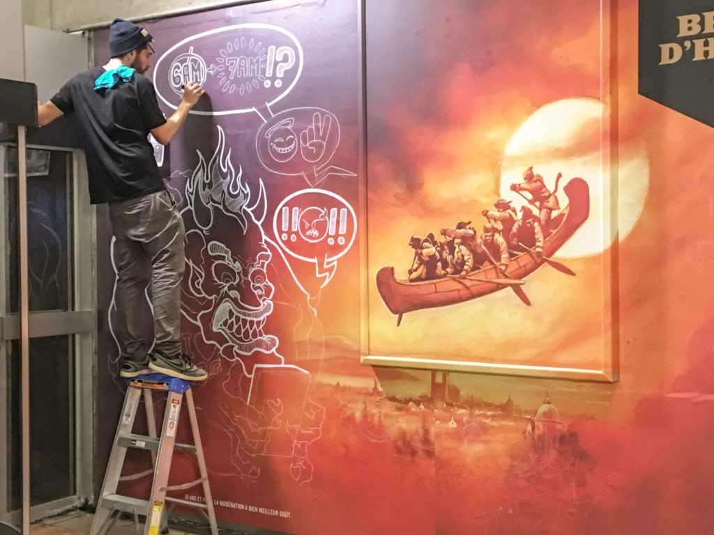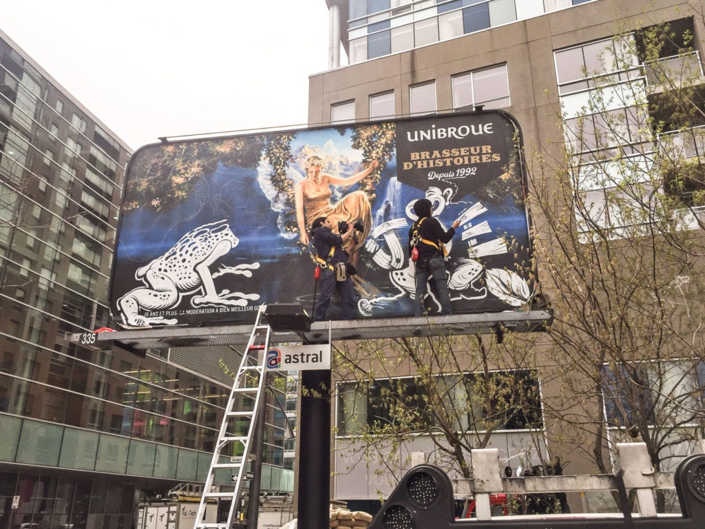 Pour célébrer ses 25 ans, Unibroue a invité cinq illustrateurs à imaginer leur version personnelle des célèbres bières de la microbrasserie. En collaboration avec Astral Affichage, les illustrateurs ont pu dessiner directement sur la face publicitaire de deux panneaux horizontaux 10 pieds par 20 pieds. L’exécution créative s’est déroulée sur deux jours complets. La campagne s’est aussi déployée dans le métro de Montréal sur des lumiquais aux stations Sherbrooke et McGill, ainsi qu’au 1000 de la Gauchetière.