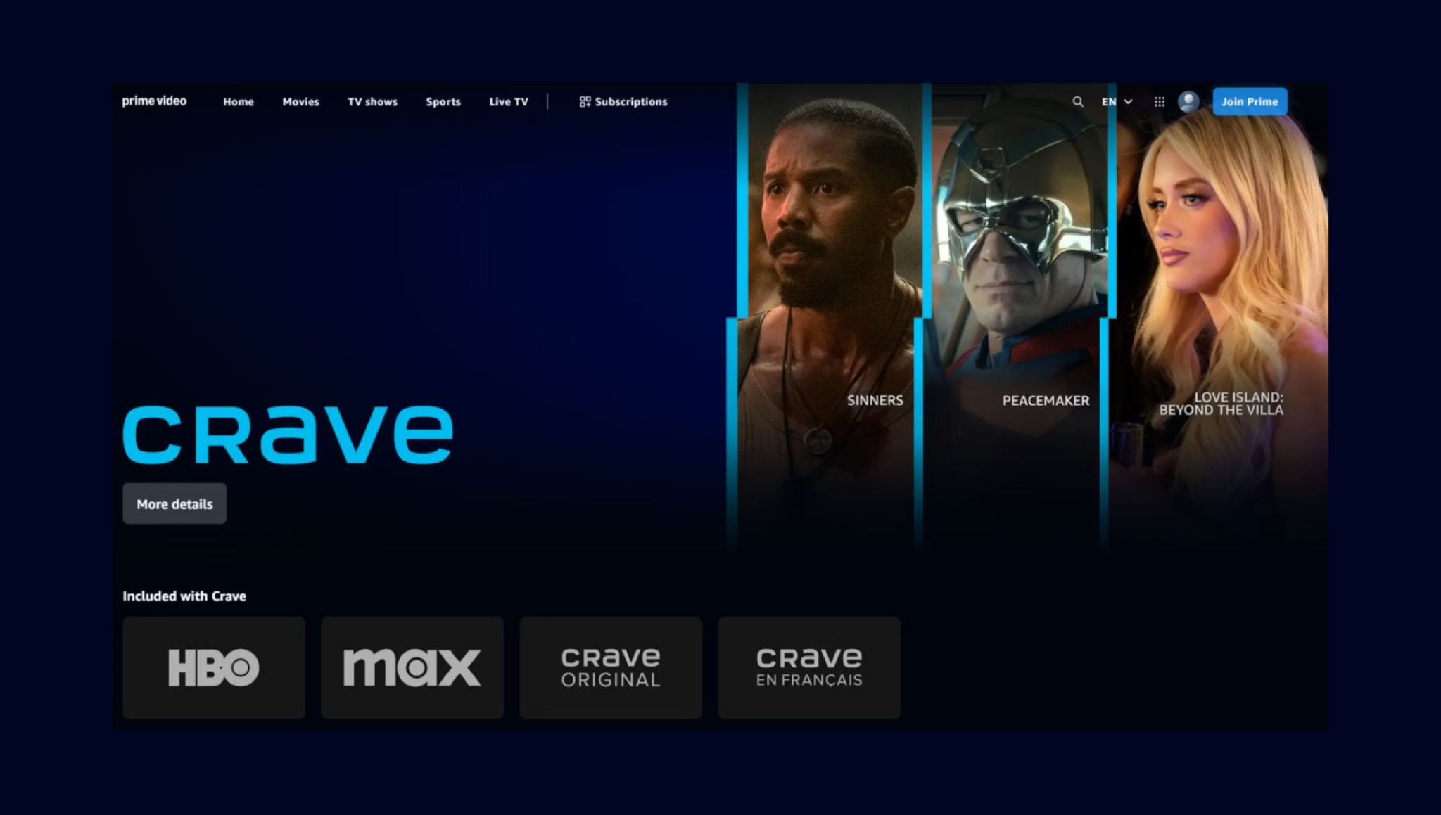 Depuis le 1er octobre, le forfait Standard avec publicités de Crave est disponible sur Prime Video au Canada. Les abonnés peuvent désormais s’y inscrire directement via leur compte Prime Video, ce qui leur offre une nouvelle façon simple et pratique d’accéder au contenu premium de Crave.