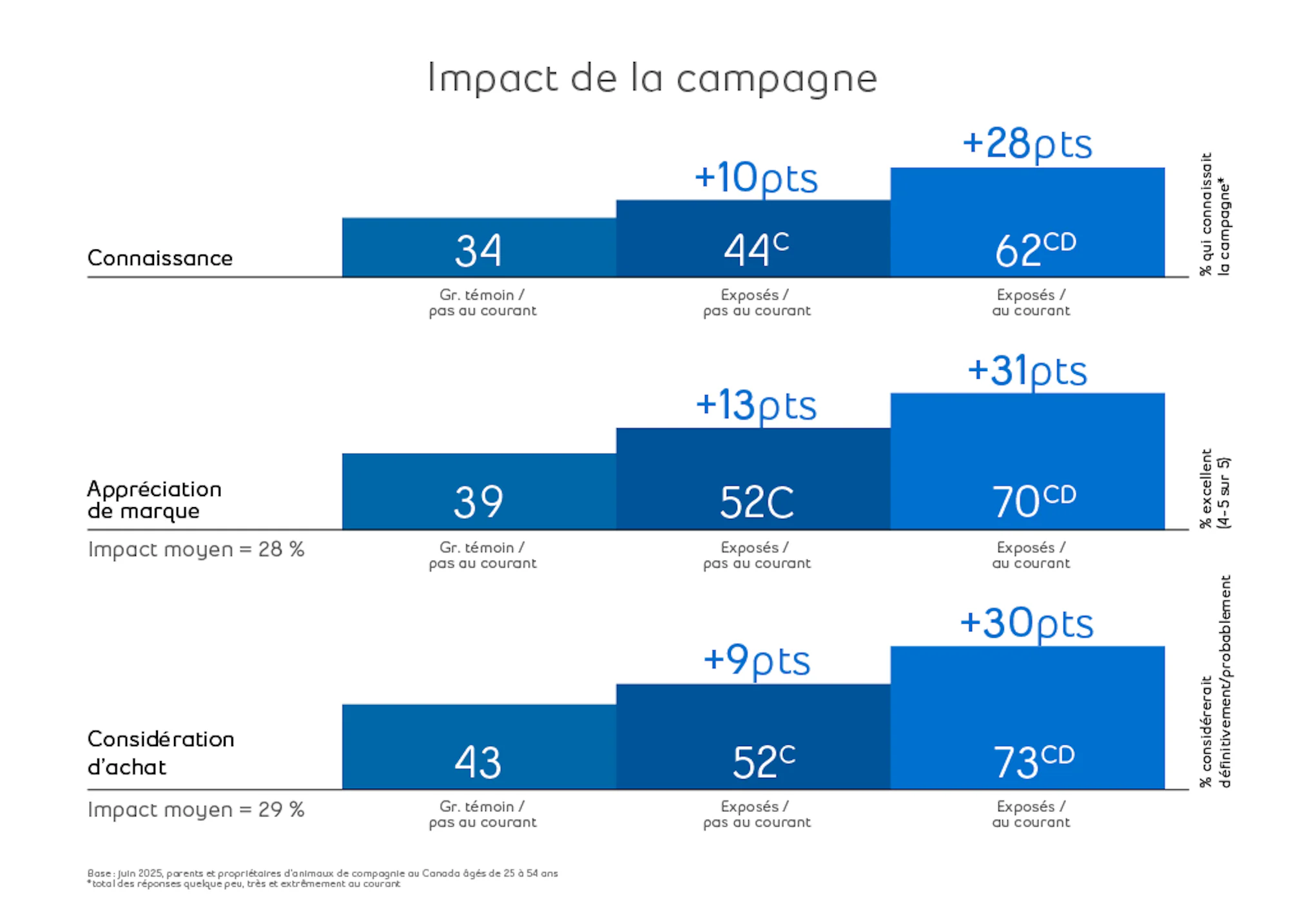 Les plus grandes hausses de notoriété et d’appréciation provenaient des familles avec des enfants et des animaux de compagnie – soit la principale cible. Voilà qui démontre comment une bonne combinaison de ciblage et de contexte peut amplifier des résultats.