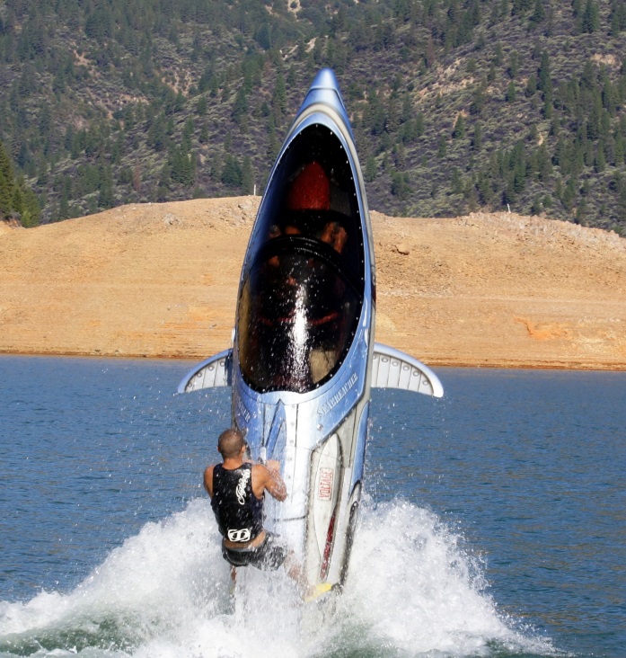 (L-R): $28,000 Gotham Golf Cart; the Seabreacher: part submarine , part sea creature; replica of a Speeder Bike inspired by Star Wars