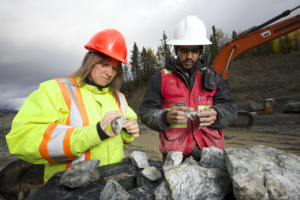 TORONTO (February 3, 2017) – It’s a new year with a new business partnership and challenging mining site that puts Claudia and Robin Bunce’s jade mining expertise to the test in an all-new season of JADE FEVER. Over a six-week period, viewers across Canada can catch a double dose of the Bunce’s exciting, high-stake search with weekly back-to-back episodes of JADE FEVER airing Tuesdays at 10 p.m. and 10:30 p.m. ET/7 p.m. and 7:30 p.m. PT beginning March 7 on Discovery. Season 3 of the original Canadian series follows the intense adventures of the Bunce family as they gamble in search of million-dollar boulders of jade in Northern B.C.’s Cassiar Mountains.(L- R:) Claudia Bunce and Mike Mee examine jade; Robin and Claudia Bunce, eager on the mining site; and Justin Bunce and Mike Mee prepare to excavate jade.